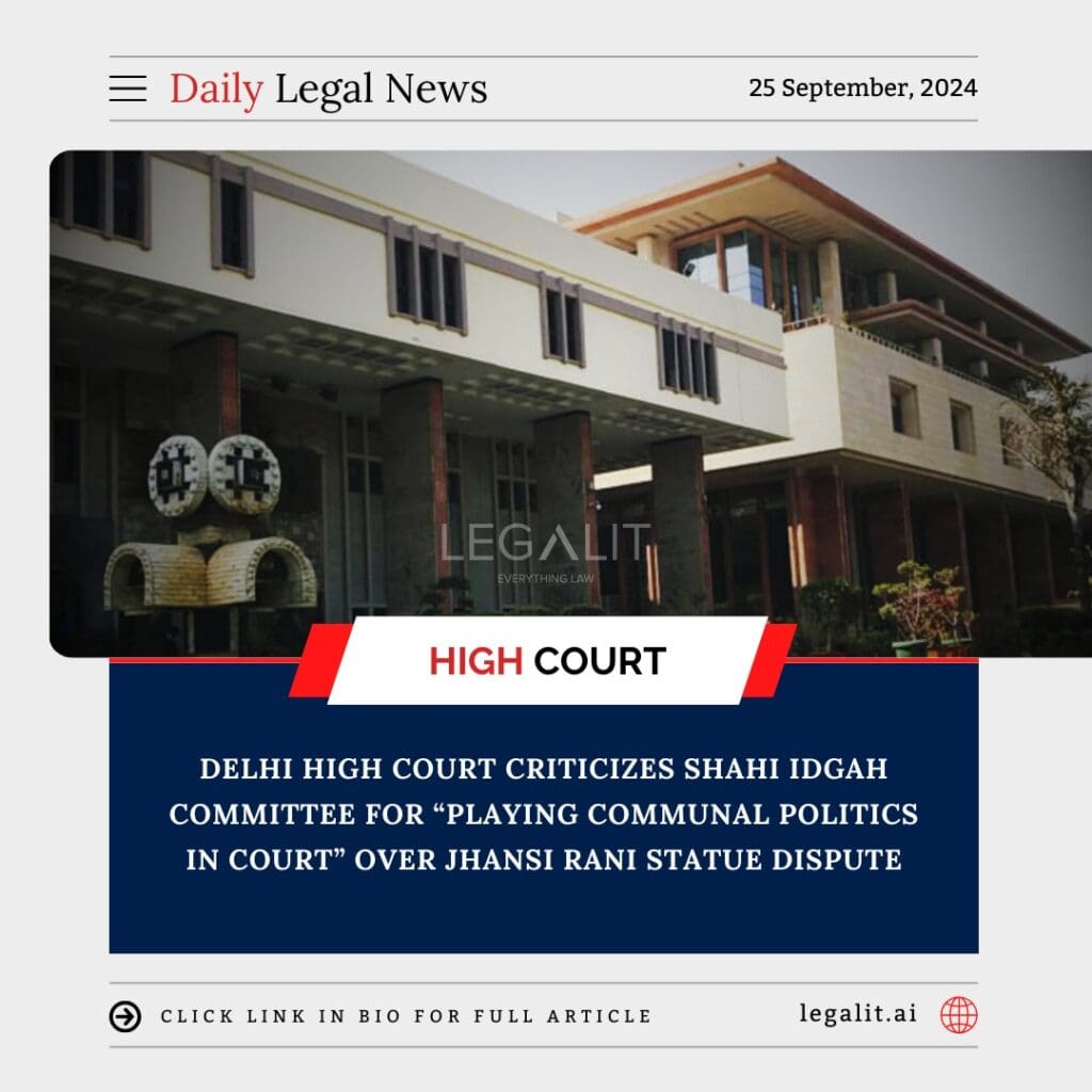 In a sharp rebuke, the Delhi High Court has condemned the Shahi Idgah committee for allegedly attempting to play communal politics during legal proceedings related to the installation of a statue of Jhansi Rani Lakshmi Bai at the Shahi Idgah park. The court expressed its displeasure over the tone and nature of the arguments presented by the committee, which appeared to shift the focus from legal merits to communal undertones.