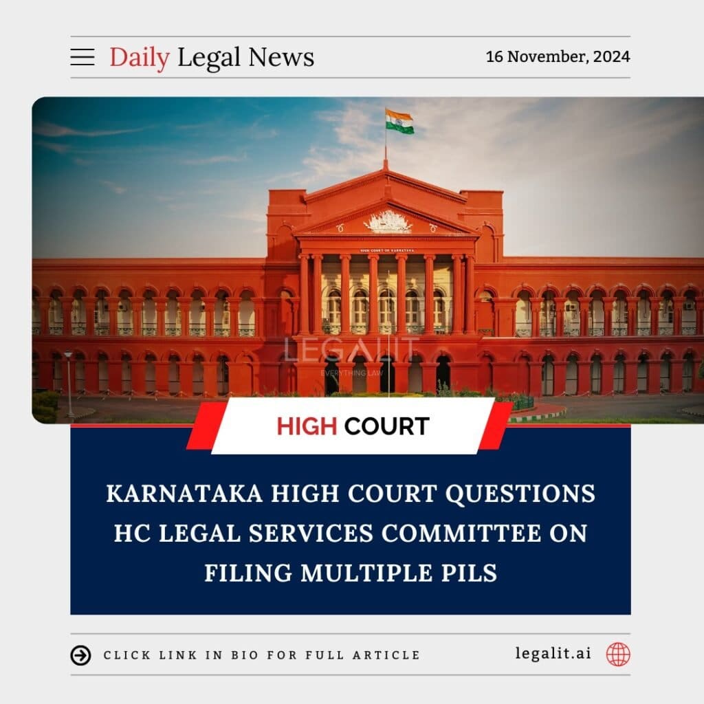 The Karnataka High Court recently expressed concern over the High Court Legal Services Committee (HCLSC) frequently filing Public Interest Litigations (PILs). The court highlighted the need for scrutiny regarding whether these PILs genuinely serve public interest or unnecessarily burden the judiciary.