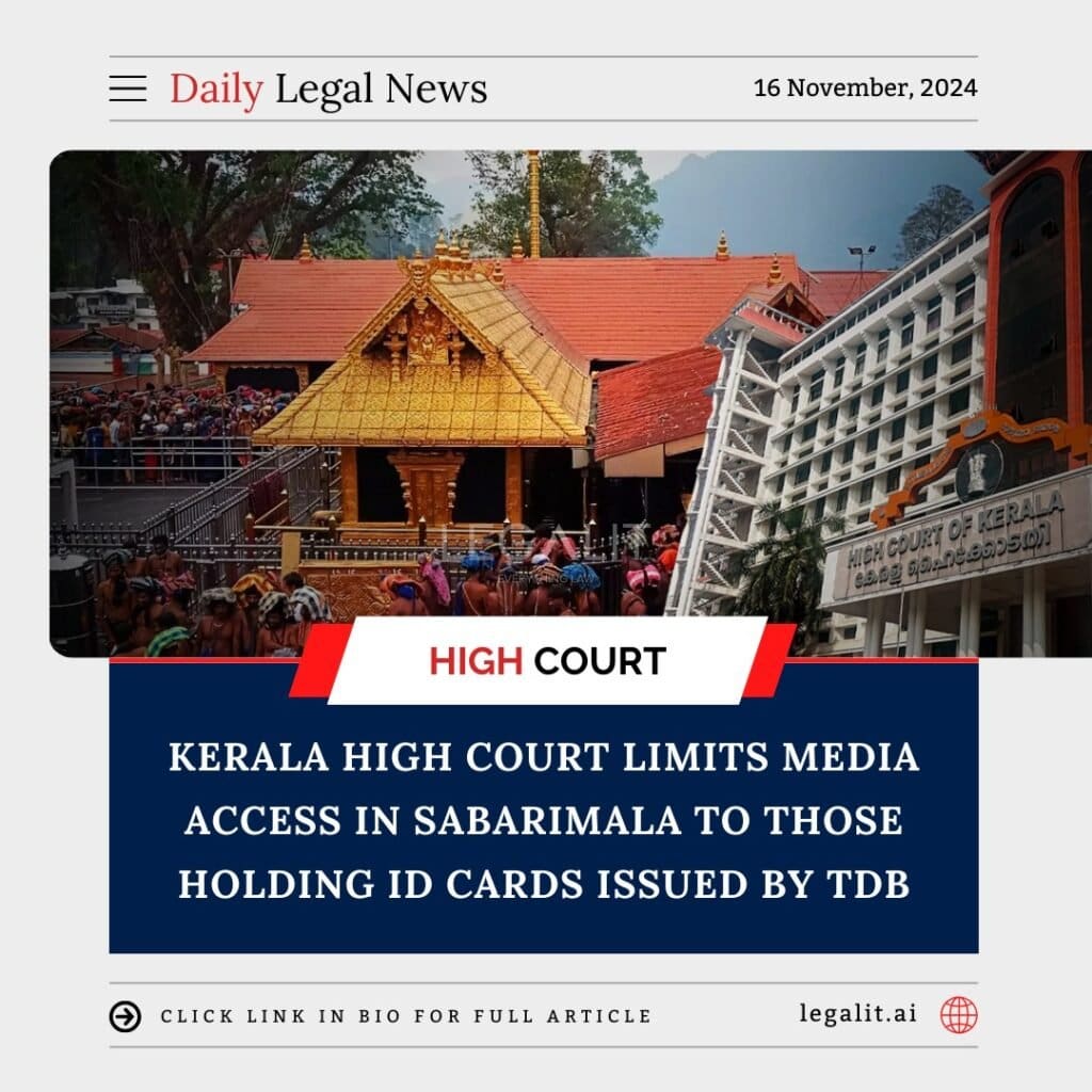 In a significant ruling, the Kerala High Court has imposed restrictions on media access to the Sabarimala temple, stating that only journalists who hold valid ID cards issued by the Travancore Devaswom Board (TDB) will be allowed to cover events at the site. This decision comes in the context of concerns over the management of media coverage during the busy pilgrimage season and the need to maintain order and decorum at the temple.