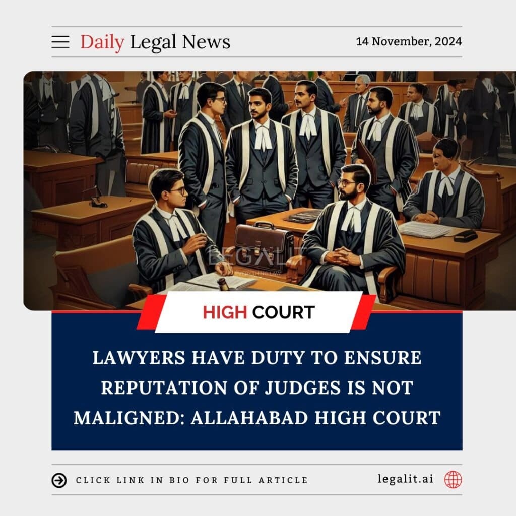 The Allahabad High Court has stated that lawyers have a responsibility to ensure that the reputation of judges is not maligned, emphasizing the need for respect for the judiciary. The court made these remarks in response to comments made by a lawyer during proceedings that were deemed disrespectful to the judiciary.