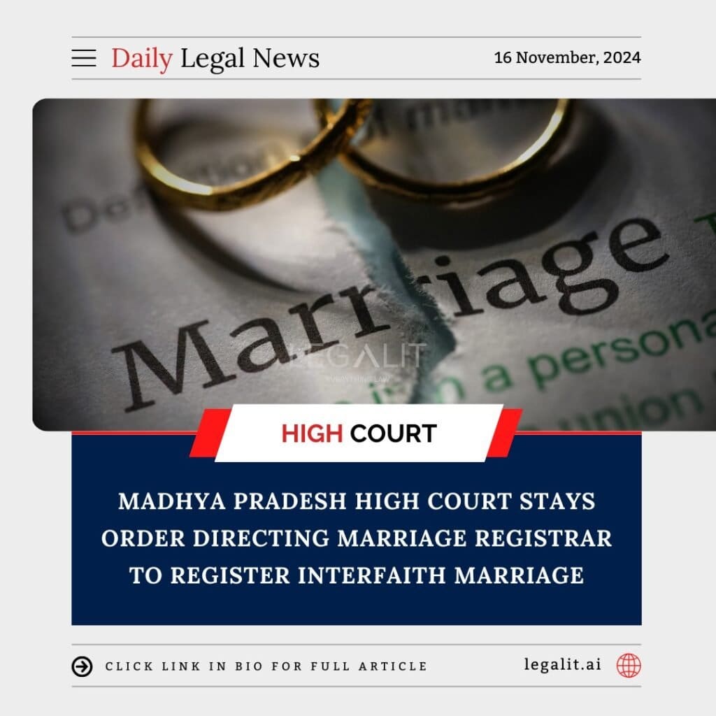 In a significant legal development, the Madhya Pradesh High Court stayed an order that had directed a Marriage Registrar to register an interfaith marriage between two individuals of different religions. The case has sparked debate over interfaith marriages and the legal framework governing them in India.