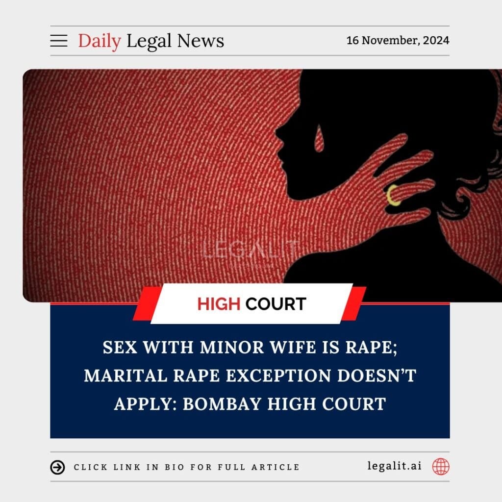 The Bombay High Court has ruled that sexual intercourse with a minor wife constitutes rape under Indian law, emphasizing that the marital rape exception in Section 375 of the Indian Penal Code (IPC) does not apply to minors.