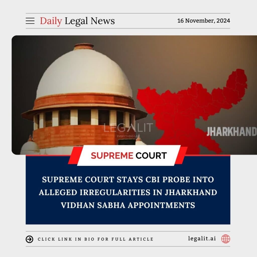 In a significant development, the Supreme Court has stayed the Central Bureau of Investigation (CBI) probe into alleged irregularities in appointments made by the Jharkhand Vidhan Sabha (Legislative Assembly). This ruling comes after a petition challenging the investigation was filed before the apex court.