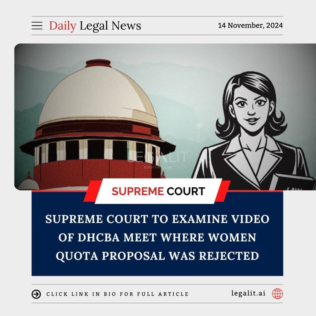 The Supreme Court of India has agreed to examine the video footage of a meeting held by the Delhi High Court Bar Association (DHCBA), where a proposal for reserving a women’s quota in the association’s elections was rejected. The Court’s decision to review the video comes after concerns were raised about the manner in which the proposal was dismissed and the treatment of women in the legal profession.